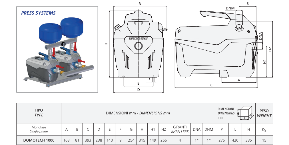Máy bơm tăng áp biến tần tự động DOMOTECH là hệ thống tăng áp tự động bằng biến tần, luôn duy trì áp suất ổn định trong hệ thống theo nhu cầu sử dụng nước. Được thiết kế để đáp ứng nhu cầu tưới tiêu cho các ứng dụng trong nước và dân dụng. Đặc biệt im lặng, nó đảm bảo tiết kiệm năng lượng tuyệt vời. Bao gồm một máy bơm ly tâm đa cánh quạt hiệu suất cao, biến tần, cảm biến áp suất, bình giãn nở và van một chiều