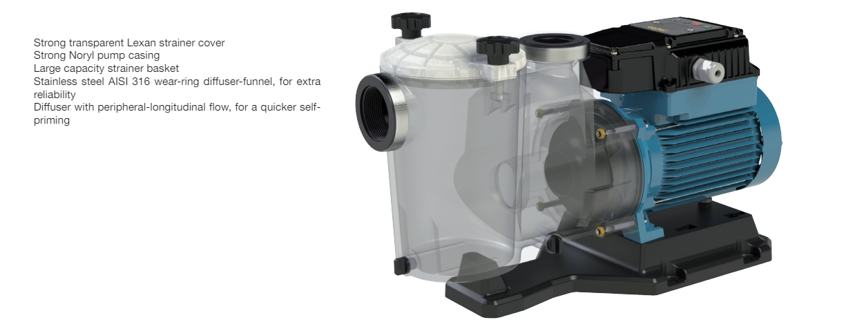 Máy bơm bể bơi tăng áp tự mồi Calpeda/Italia model I-MPC là dòng máy bơm ly tâm cho bể bơi tự mồi có bộ lọc tích hợp và động cơ cách nhiệt với nước bơm.