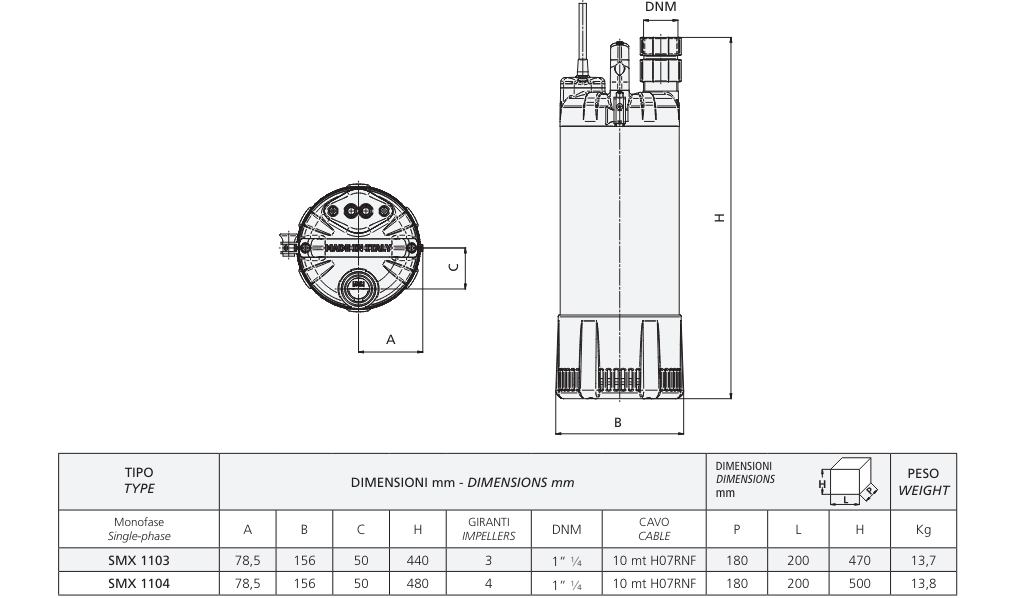 Catalog Máy bơm chìm thoát nước đa tầng cánh Speroni/Italia model SMX
