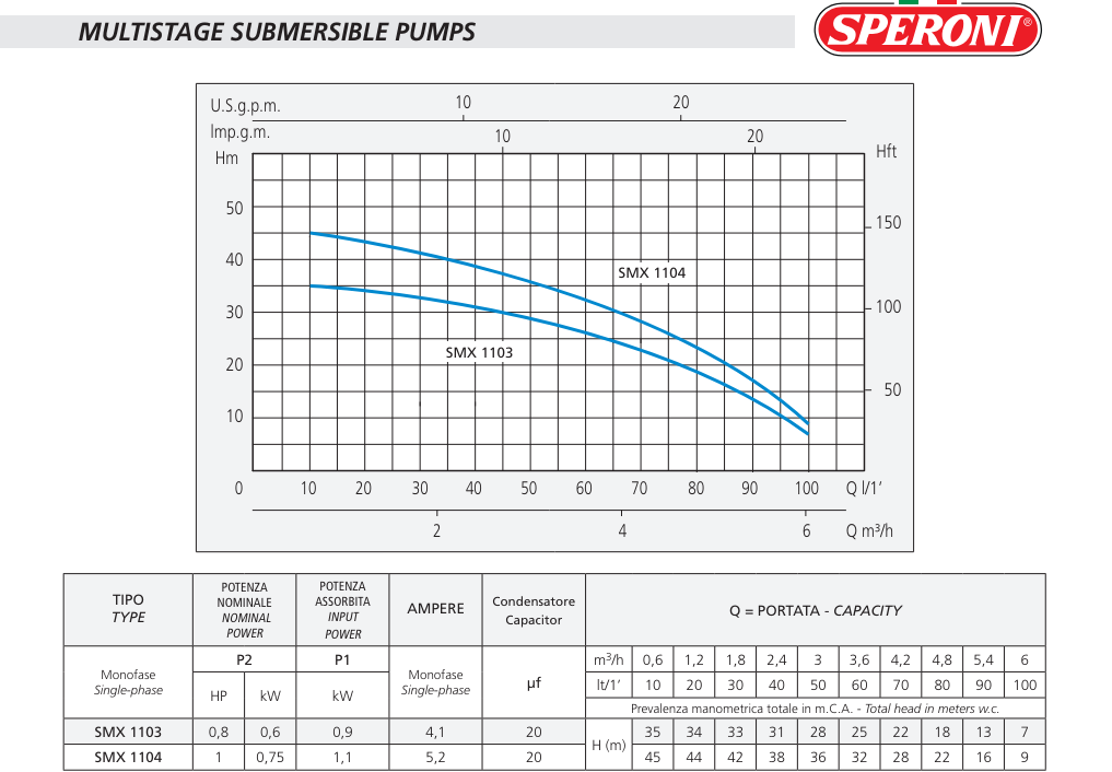 Máy bơm chìm thoát nước đa tầng cánh Speroni/Italia model SMX là máy bơm điện chìm nhiều tầng dùng để thoát nước sạch. Nó đặc biệt thích hợp cho các hệ thống tưới tiêu, cung cấp nước uống, giặt giũ và cho tất cả các trường hợp cần tăng áp suất.