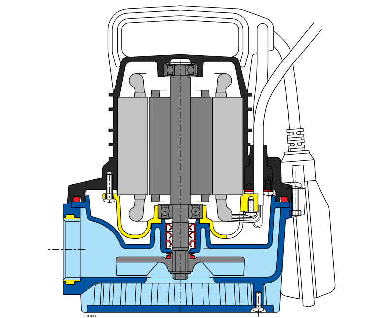 - Cáp: có phích cắm, dài 5 m, 245IEC57 4 G 0,75 mm2, theo EN 60335-2-41 cho máy bơm lên đến 5 kg.