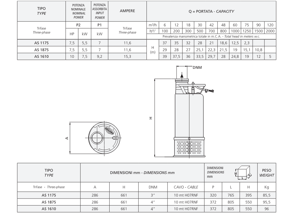 Máy bơm chìm thoát nước Speroni/Ý model AS là máy bơm điện chìm dùng để thoát nước trên công trường, mương, kênh, hầm chui. Dùng để bơm nước ra khỏi hầm, gara và tầng hầm. Đặc biệt thích hợp để thoát nước bẩn có chứa một lượng vừa phải vật liệu mài mòn.