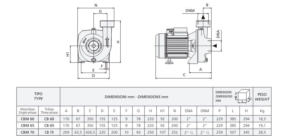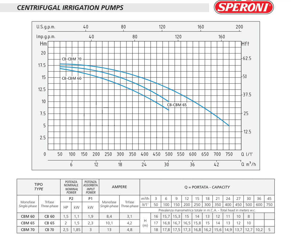 Catalog Máy bơm ly tâm đơn tầng cánh Speroni/Italia model CBM