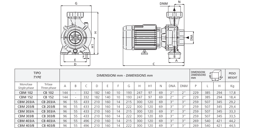 Catalog Máy bơm ly tâm đơn tầng cánh CBM 102/403