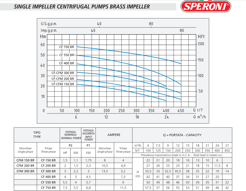 Catalog Máy bơm ly tâm liền trục đơn tầng cánh Speroni/Italia model CFM-BR