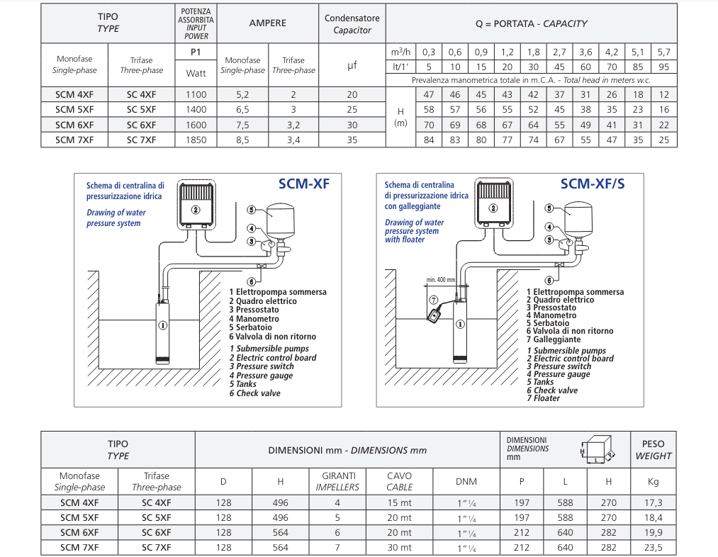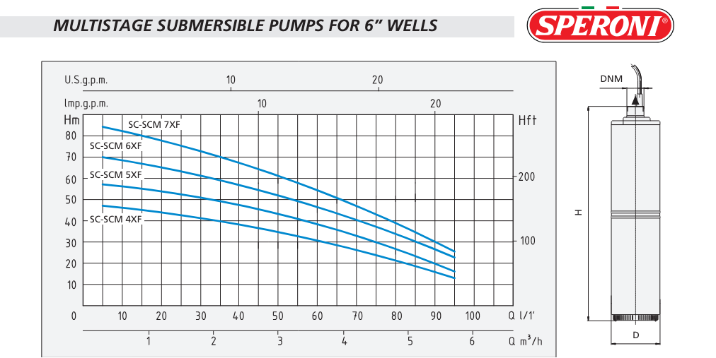 Catalog Máy bơm giếng chìm đa tâng cánh Speroni/Ý model SCM-XF
