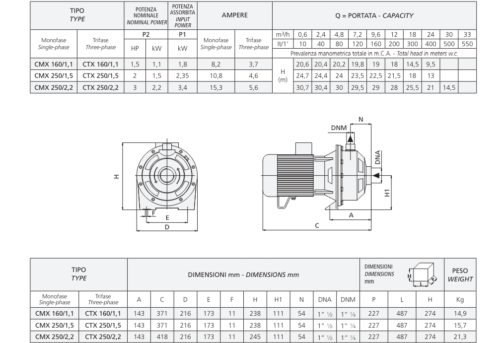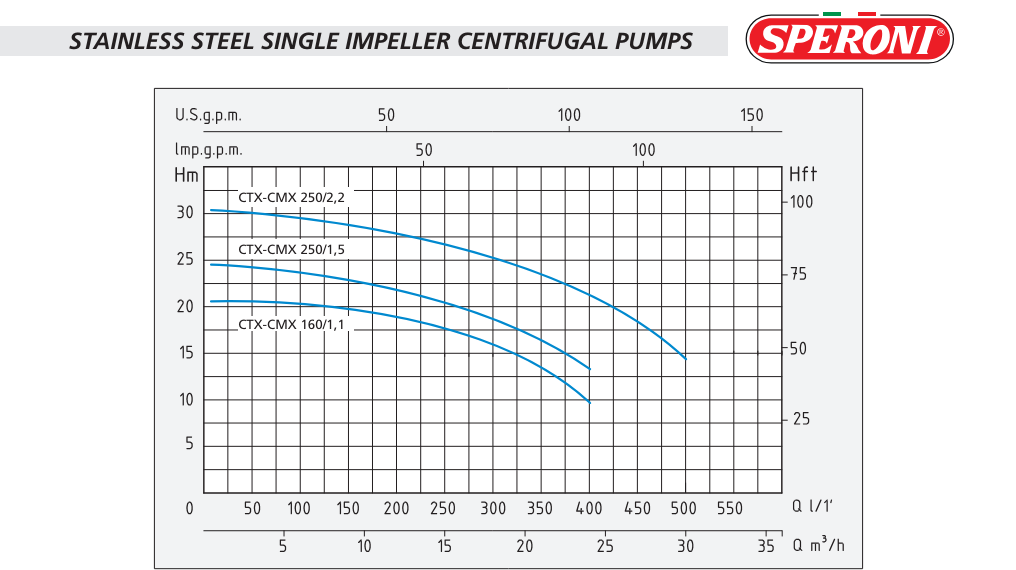 Catalog Máy bơm ly tâm trục ngang đơn tầng cánh bằng thép không gỉ Speroni/Ý model CMX 160/250
