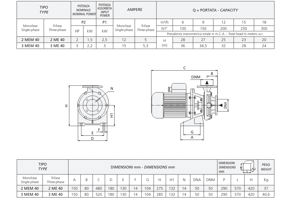 Catalog Máy bơm ly tâm liền trục đơn tầng cánh MEM40