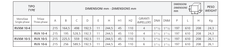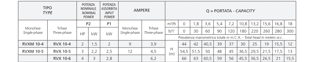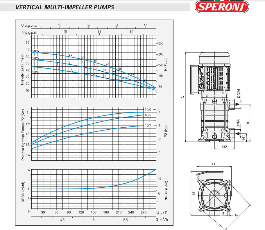 Máy bơm ly tâm trục đứng đa tầng cánh Speroni/Ý model RVXM10 là máy bơm nhiều cánh quạt trục đứng phát triển áp suất đáng kể, đồng thời tốc độ dòng nước cao với mức tiêu thụ năng lượng thấp. Do khả năng hoạt động êm ái và đặc tính thủy lực tuyệt vời, chúng được sử dụng trong các hệ thống gia dụng, tưới phun mưa nhỏ, rửa xe và lắp ráp các nhóm áp suất (nồi hấp). Đặc biệt thích hợp cho các hệ thống tự động được điều khiển bằng bộ điều chỉnh dòng chảy hoặc bộ biến tần.
