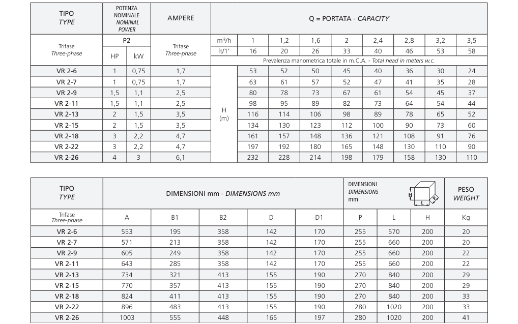 Miễn phí vận chuyển đối với đơn hàng nội thành Hà Nộ bán kính 10KmMáy bơm ly tâm trục đứng đa tầng cánh Speroni/Ý model VR2 là máy bơm điện ly tâm trục đứng đa tầng không tự mồi. Trục động cơ được nối trực tiếp với trục bơm thông qua khớp nối. Được sử dụng để vận chuyển chất làm mát, chất lỏng bôi trơn và nước ngưng được sản xuất bởi các máy móc như máy tiện, máy mài, trung tâm gia công, hệ thống làm mát, hệ thống làm sạch công nghiệp và hệ thống lọc.