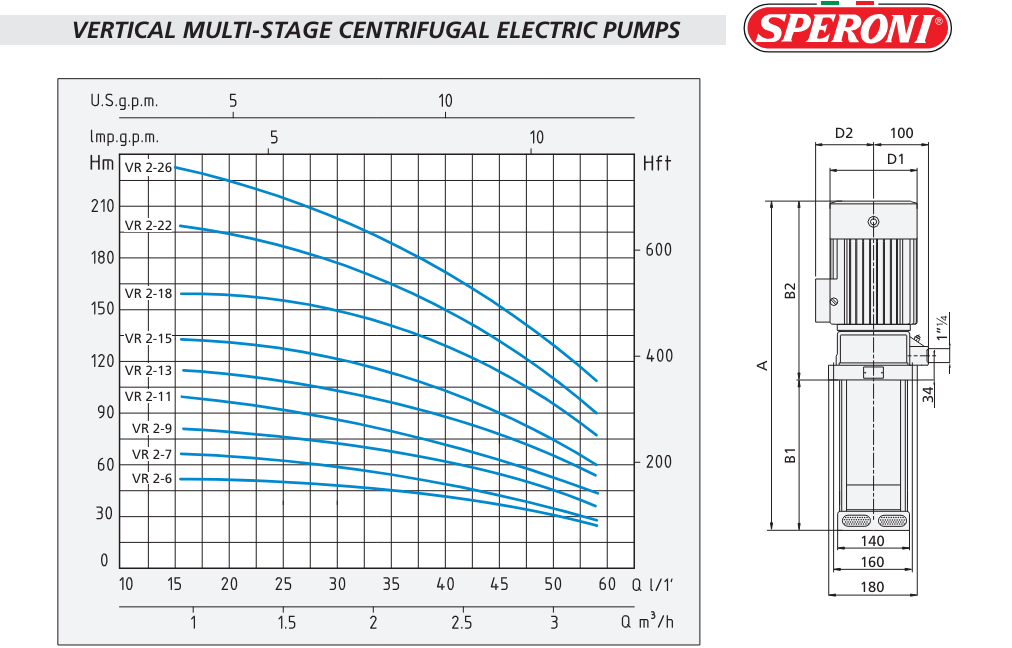 Catalog Máy bơm ly tâm trục đứng đa tầng cánh Speroni/Ý model VR2