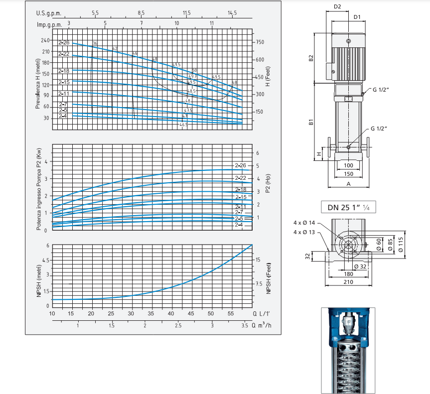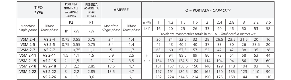 Máy bơm ly tâm trục đứng đa tầng cánh Speroni/Ý model VS2 ;à máy bơm đa năng dùng cho các ứng dụng dân dụng và công nghiệp, cho hệ thống rửa áp lực cao, tưới tiêu, nông nghiệp, thể thao, cho đài phun nước và chuyển động của chất lỏng có tính ăn mòn vừa phải mà không có chất rắn hoặc mài mòn.