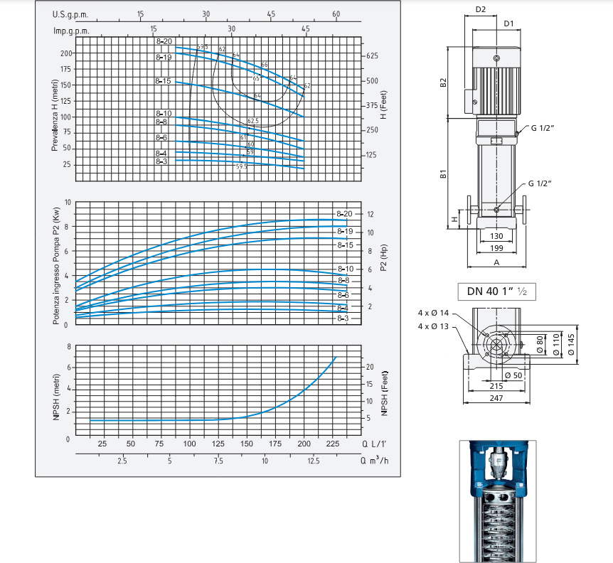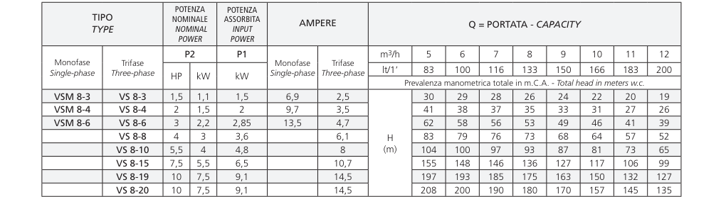 Máy bơm ly tâm trục đứng đa tầng cánh Speroni/Ý model VS8 là máy bơm điện đa năng dùng cho các ứng dụng dân dụng và công nghiệp, cho hệ thống rửa áp lực cao, tưới tiêu, nông nghiệp, thể thao, cho đài phun nước và chuyển động của chất lỏng có tính ăn mòn vừa phải mà không có chất rắn hoặc mài mòn.