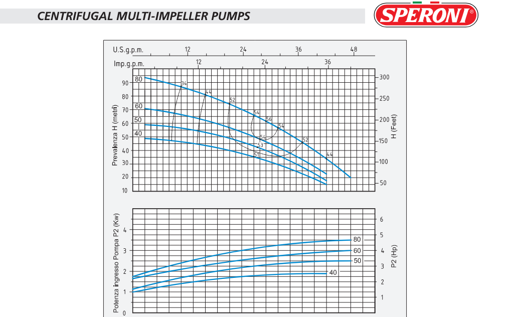 Catalog Máy bơm ly tâm trục ngang đa tầng cánh Speroni/Italia model RSM 40/80