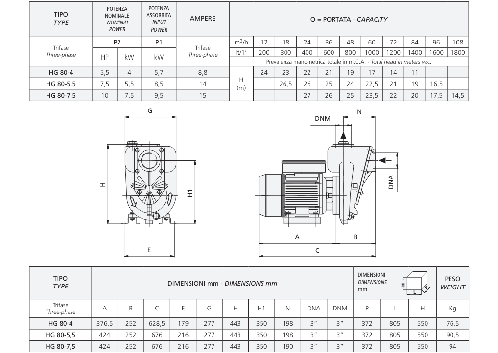Catalog Máy bơm tự mồi cánh hở Speroni/Italia model HG