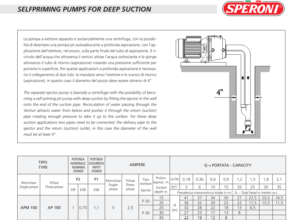 Catalog Máy bơm tự mồi hút sâu Speroni/Italia model APM