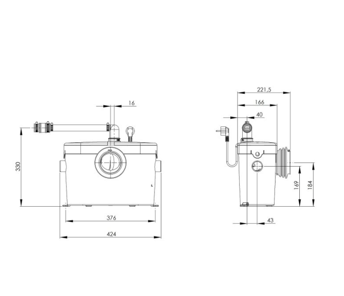 Nhờ động cơ hoạt động yên tĩnh (46 dB (A)) và kích thước nhỏ gọn, máy nghiền bồn cầu Saniaccess 2 sẽ rất kín đáo.