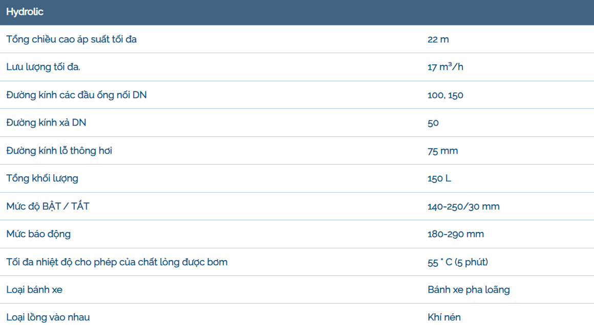 • 4 phiên bản: Nâng từ 22 đến 39 m, lưu lượng lên đến 17m³ / h