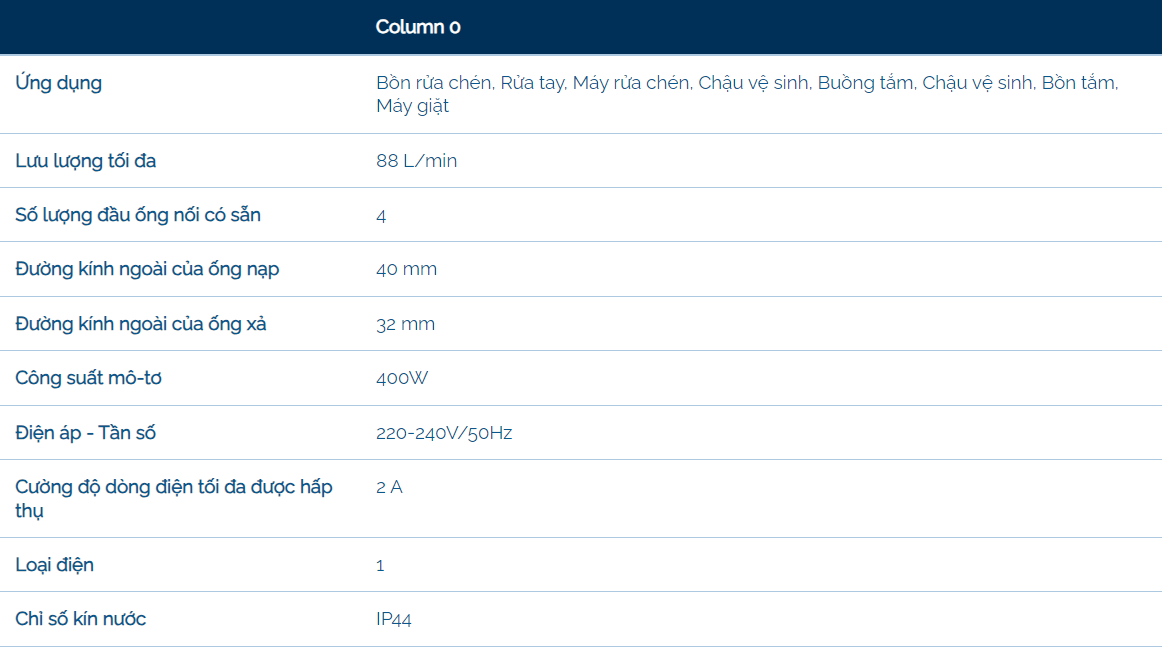 Sản phẩm có thể hút sạch nước xám lên đến nhiệt độ 60 ° C, dùng cho máy rửa bát hoặc máy giặt.