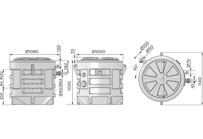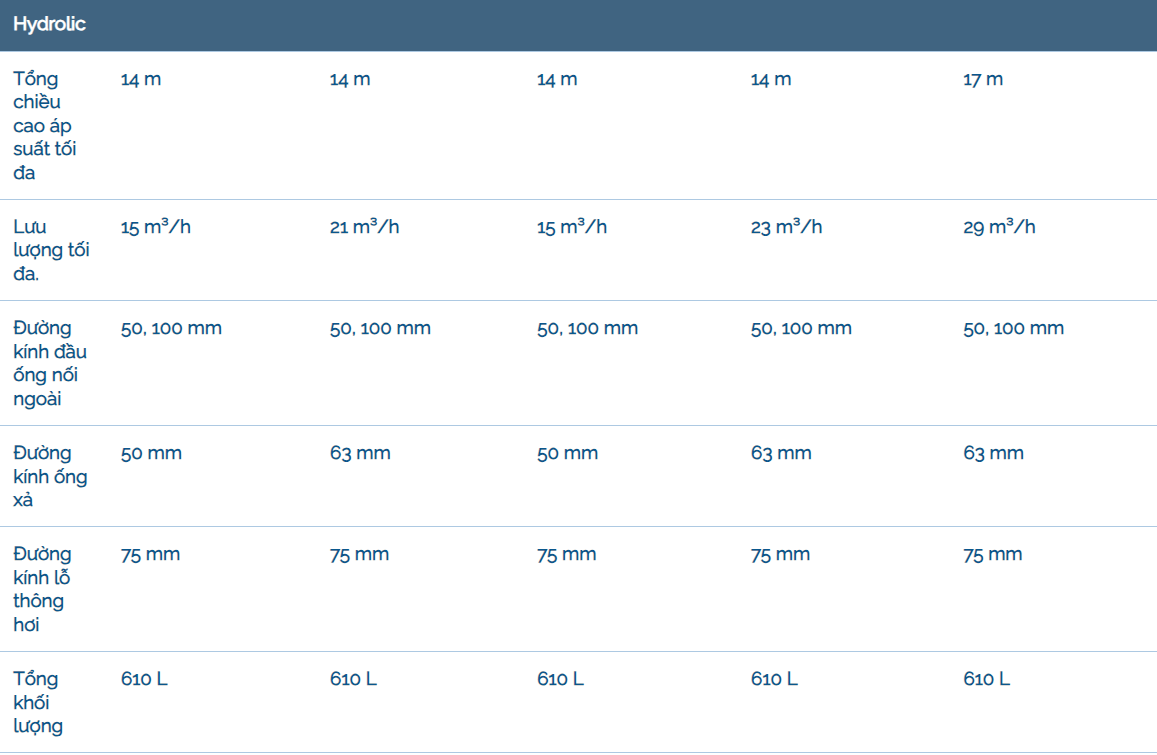 Dù chọn phiên bản nào, trạm cũng được trang bị hệ thống thủy lực với van ngắt và van một chiều, công tắc phao tích hợp và hộp báo động có dây.