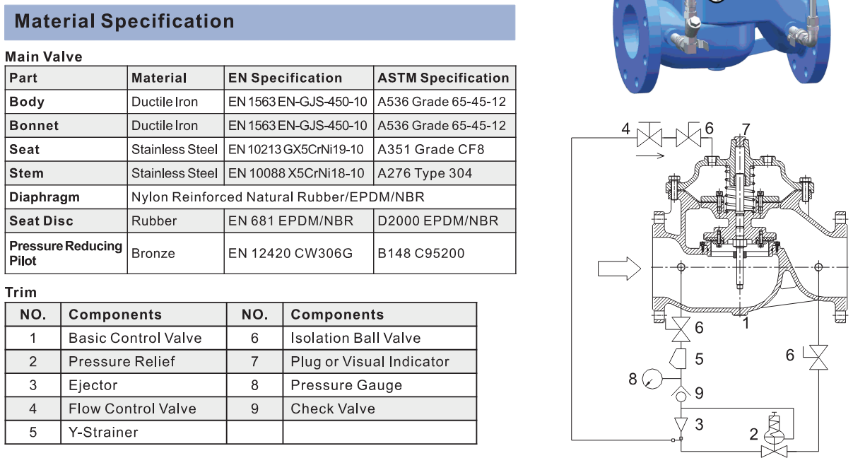 - Van an toàn Weflo/China: hạn chế áp suất đầu vào bằng cách giảm áp suất dư thừa