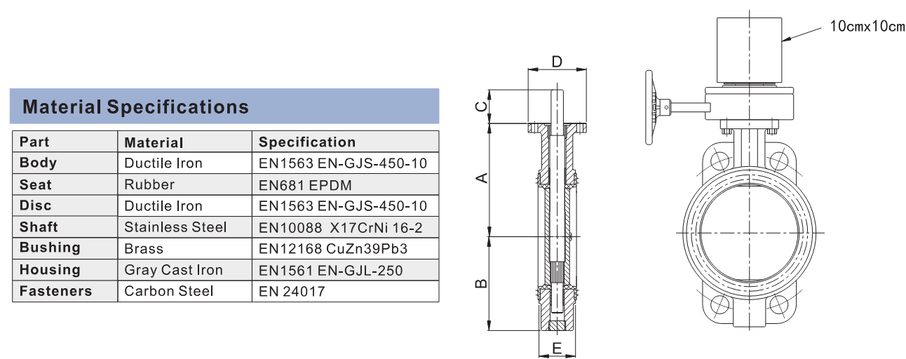 - Đáp ứng hoặc vượt quá yêu cầu của EN 593 và tiêu chuẩn MSS SP-67