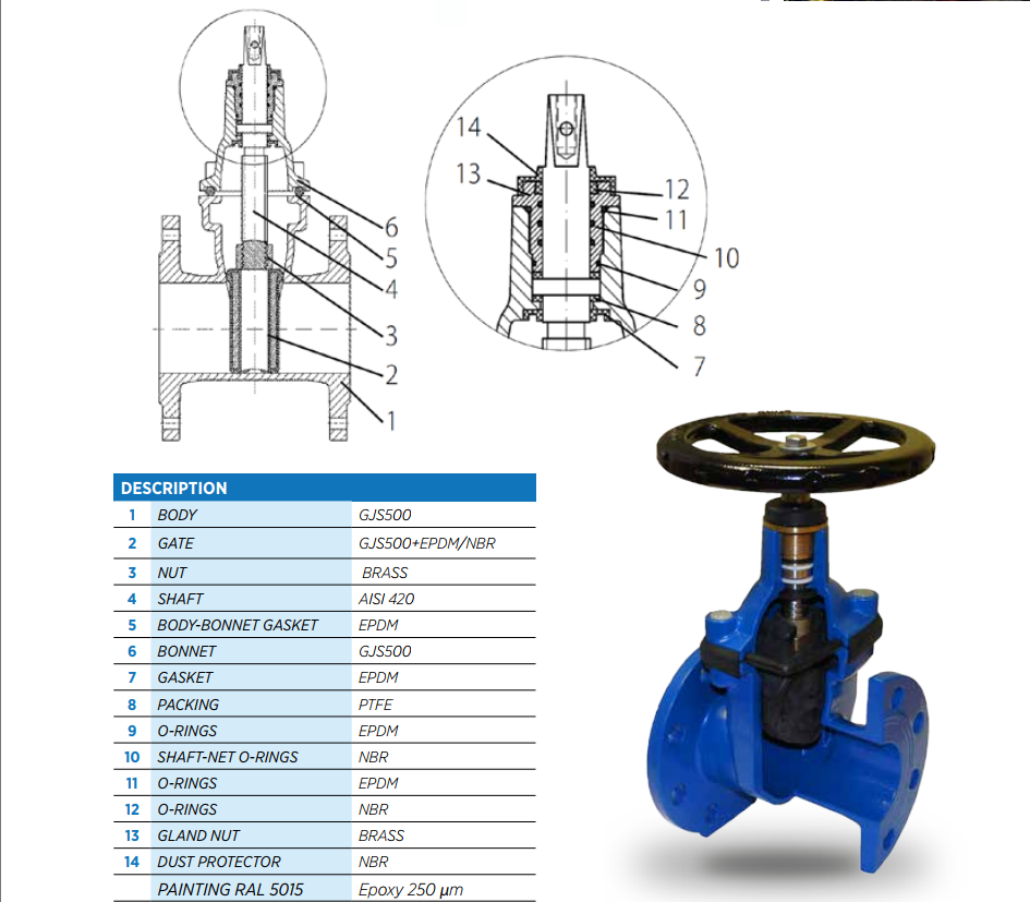 - Đĩa van: Gang dẻo GJS500, bọc cao su EPDM/NBR