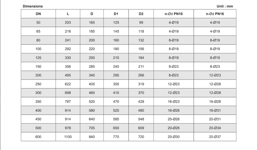 - Lỗ khoan trên mặt bích của van tuân theo chuẩn BS4504 với các cấp độ áp suất PN10, PN16, PN25